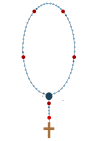 These spaced beads seperate what is known as "The Five Decades". Beginning with (1)The Apostles Creed [to first spaced bead], (2)The LORDS Prayer [to second spaced bead], (3)Ten Hail Mary's [to third spaced bead], (4)The Glory Be to the Father [to the fourth spaced bead], (5)The Fatima Prayer [ back to the large Head bead at the crucifix tassel ] .